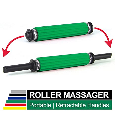 Very portable TheraBand Roller Massager is 19 inches when fully extended and retracts to 12 inches to easily fit into any gym bag, purse, drawer, suitcase, or glove box for on the go self myofascial release and self massage