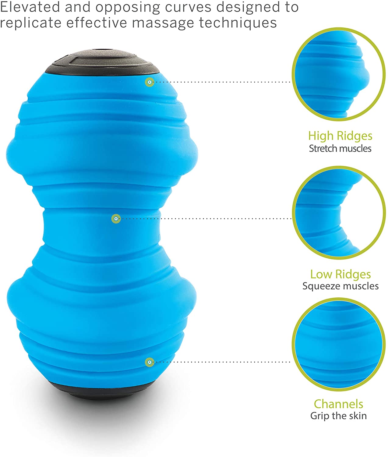 Opposing high and wide ridges stretch the muscle, while high and narrow ridges squeeze the muscle to increase circulation to hard-to-reach muscle tissue